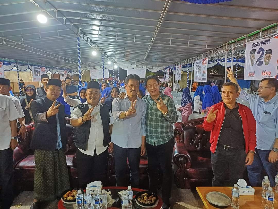 Sambutan meriah dan kompak tampak saat ibu- ibu kompak mengenakan kerudung berwarna biru, menandakan dukungan terhadap Rudi- Rafiq.
