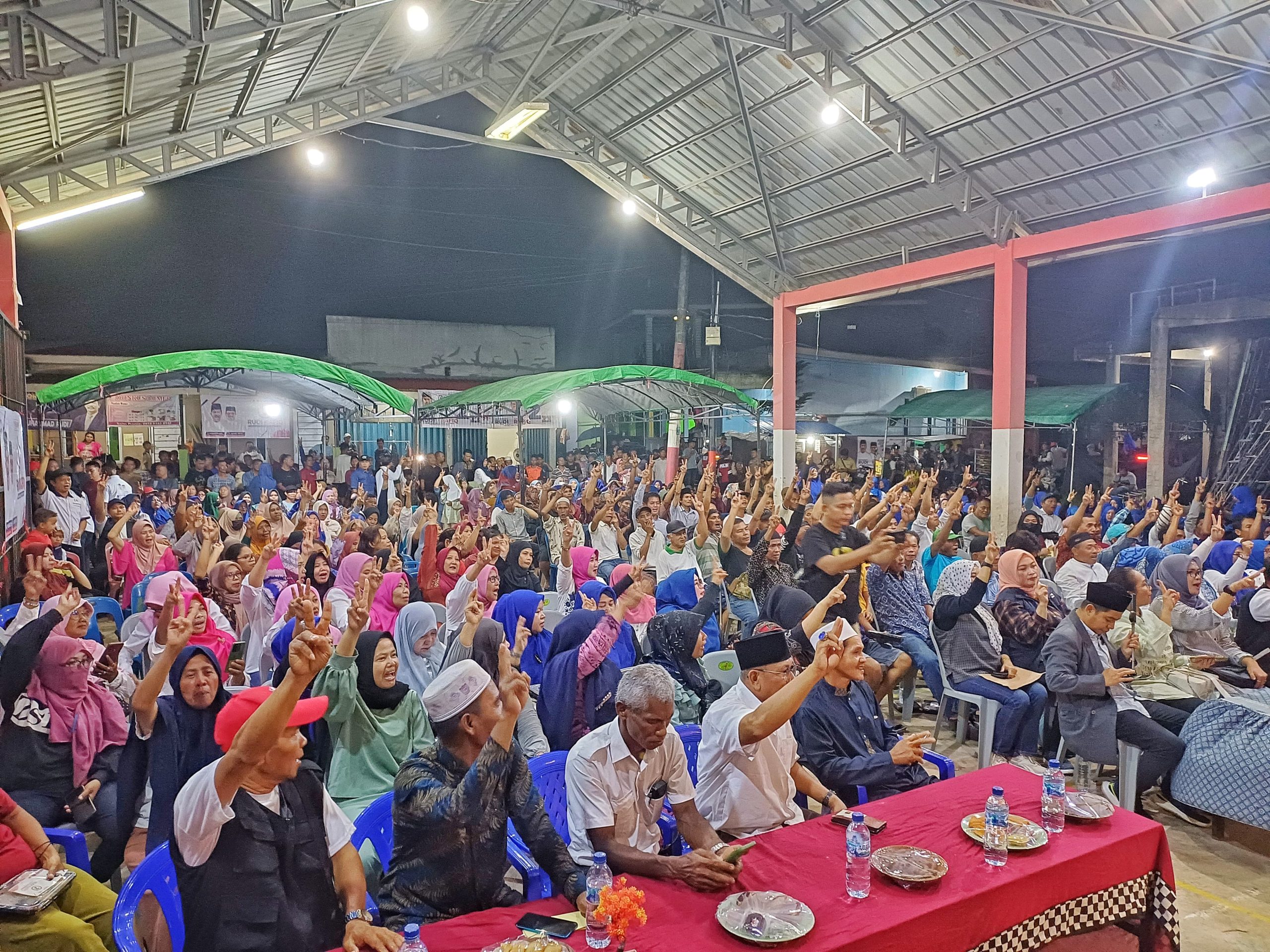 HMR yang didampingi Sekretaris Tim Pemenangan, Kamaluddin, hadir langsung pada acara yang digelar di Fasum RT 02/ RW 12, Seinayon, Kelurahan Sadai, Bengkong, Batam, kamis (17/10/2024) malam.