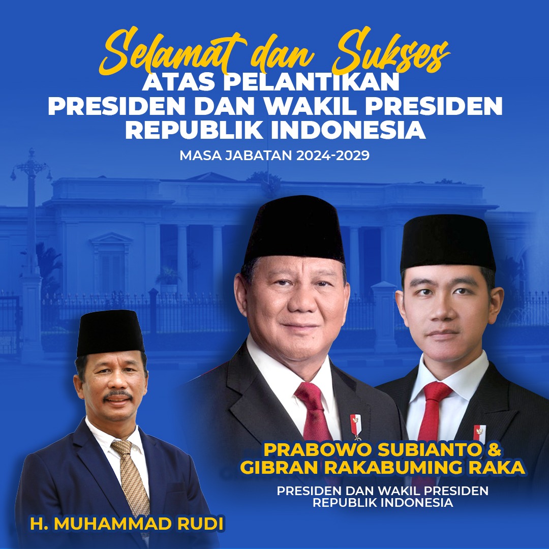 BATAM, Vitomedia,id – H. Muhammad Rudi memberikan ucapan selamat atas pelantikan Prabowo Subianto – Gibran Rakabuming Raka sebagai Presiden dan Wakil Presiden Republik Indonesia, Minggu (20/10/2024).