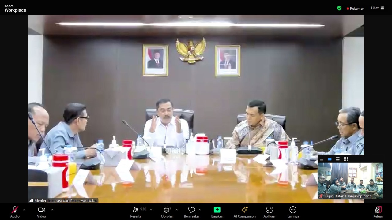 TG.PINANG, Vitomedia.id – Jajaran pejabat struktural Rumah Tahanan Negara Kelas I Tanjungpinang secara virtual mengikuti arahan dari Menteri Imigrasi dan Pemasyarakatan, Agus Andrianto beserta wakil Menteri Imigrasi dan Pemasyarakatan, Silmy Karim, Selasa (22/10)