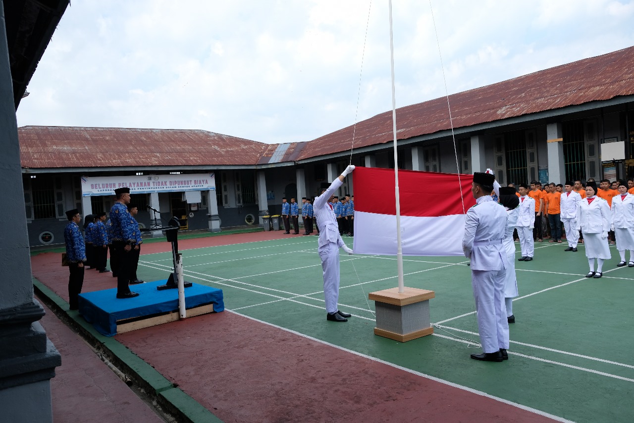 TG.PINANG,Vitomedia.id – Memperingati 96 Tahun Hari Sumpah Pemuda tahun 2024 yang jatuh pada hari ini, 28 Oktober 2024, Rumah Tahanan Negara (Rutan) Kelas I Tanjungpinang Kantor Wilayah Kementerian Hukum dan HAM Kepulauan Riau gelar upacara bendera pada pukul 08.00 WIB pagi ini yang bertempat di lapangan blok Bintan Rutan Tanjungpinang. Upacara tersebut dihadiri oleh Kepala Rutan, Pejabat Struktural, JFT, dan Pelaksana beserta seluruh Warga Binaan Pemasyarakatan (WBP) Rutan Kelas I Tanjungpinang.