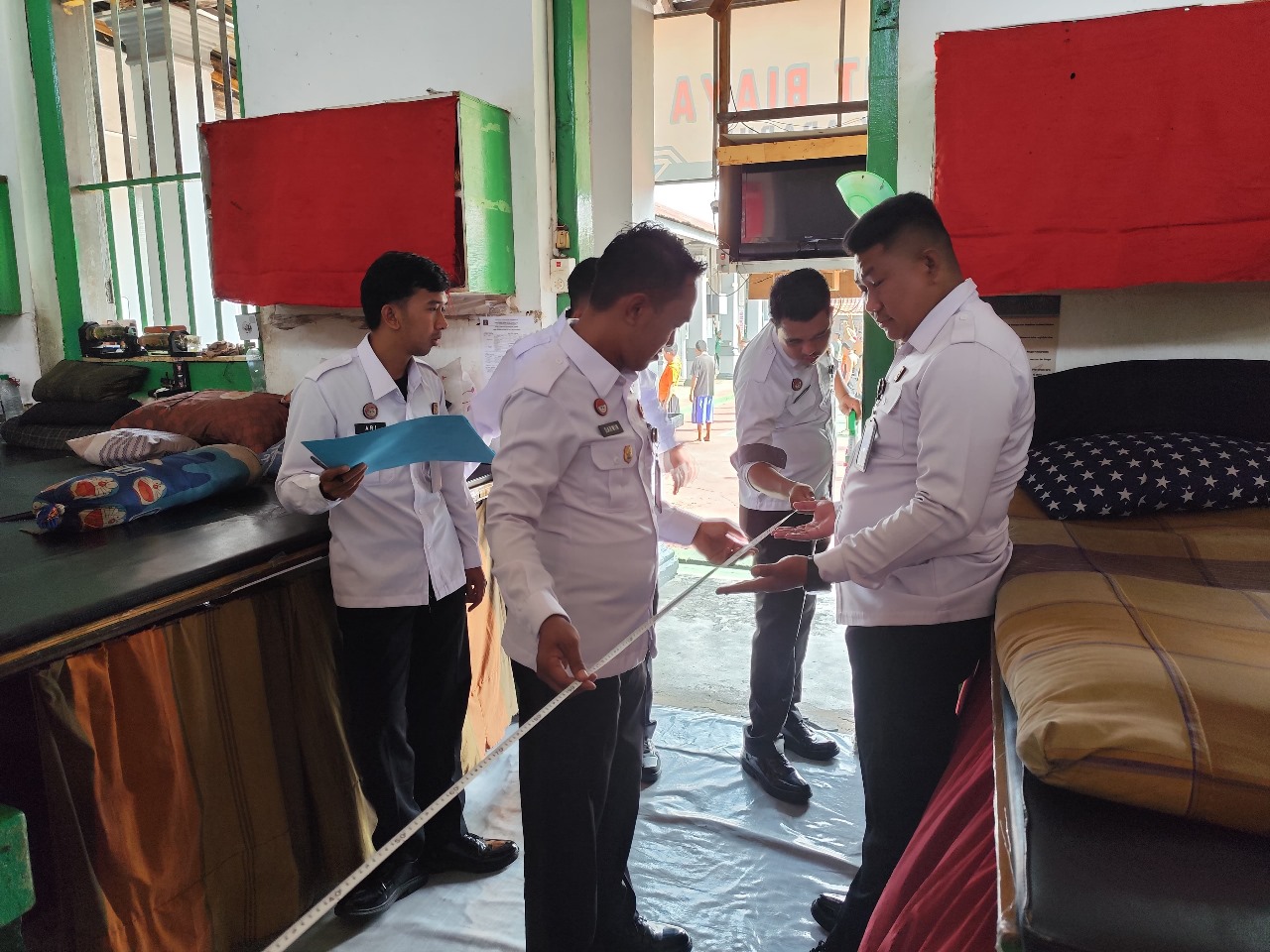 Kepala Seksi Pengelolaan, Fatur Rahmani; Kepala Kesatuan Pengamanan Rutan, Yongki Yastinanda; Kasubsi Umum, Tri Wahyu Widodo, bersama staff pengamanan Rutan, secara cermat mengukur setiap ruang gerak di dalam kamar hunian. Dengan menggunakan alat ukur meteran, mereka menghitung secara detail luas ruang yang dapat digunakan untuk tidur. Data yang diperoleh dari pengukuran ini akan menjadi dasar dalam menentukan kapasitas maksimal setiap kamar hunian.