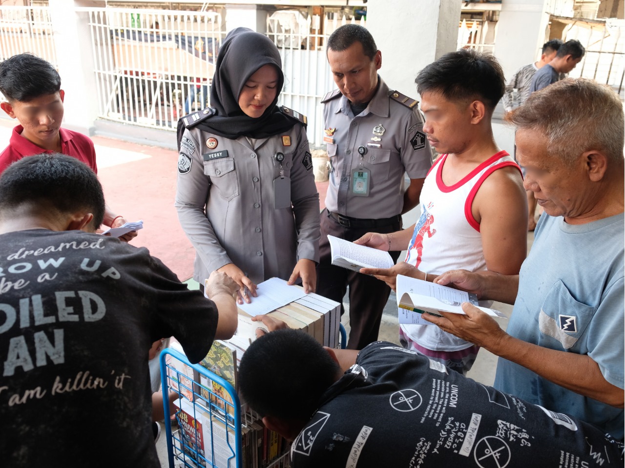 TG.PINANG, Vitomedia.id – Dalam upaya menampung minat membaca bagi Warga Binaan Pemasyarakatan (WBP), Rutan Kelas I Tanjungpinang optimalkan layanan perpustakaan di dalam Rutan. Layanan perpustakaan ini melibatkan seluruh WBP secara bergantian, dimana mereka diharapkan lebih aktif meminjam dan membaca buku melalui Perpustakaan keliling.