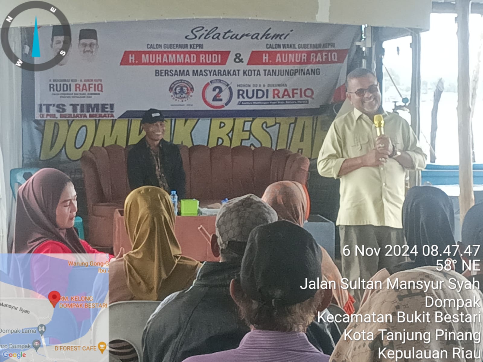TG.PINANG, Vitomedia.is – Kompanye terbuka pasangan calon (Paslon) Nomor urut 2, H Muhammad Rudi dengan H Aunur Rafiq, selaku Gubernur dan Wakil Kepri, di RT.01/RW.04, Kampung Tanjung Ayun Kelurahan Dompak Kecamatan Bukit Bestari, Kota Tanjungpinang, Provinsi Kepulauan Riau (Kepri). Rabu (6/11/2024).